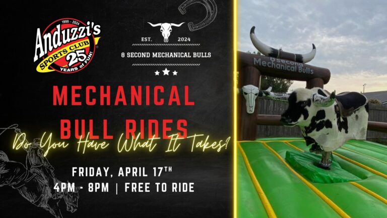 Hold on tight… we’re partnering with 8 Second Mechanical Bulls on Friday, April 17th!! Think you’ve got what it takes to stay on? Grab a drink, saddle up, and see how long you can last. Bragging rights (and maybe a few laughs) guaranteed.